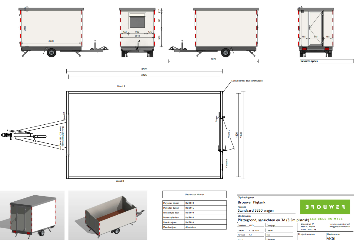 Schaftruimte voor 6 personen. Het eigen gewicht van de schaftwagen is <750KG. Hierdoor is de wagen niet kentekenplichtig en mag deze wagen door alle auto's met trekhaak worden vervoerd. De wagen is geschikt voor het snelverkeer, hierdoor mag de wagen op de snelweg worden vervoerd.